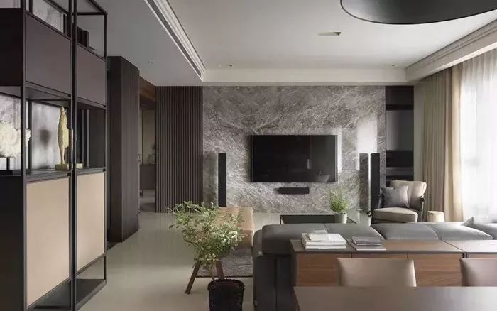 選用大理石來(lái)做電視背景墻,可以瞬間提升整個(gè)客廳的檔次。因?yàn)槊繅K大理石的紋理都是獨(dú)一無(wú)二的,有簡(jiǎn)約流暢的花紋來(lái)凸顯層次感,也有千變?nèi)f化的紋路帶來(lái)強(qiáng)烈的視覺(jué)沖擊。